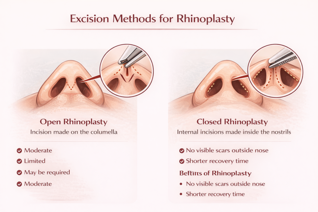 Closed Rhinoplasty: Incisions are made inside the nostrils, resulting in no visible external scars and a faster recovery.
